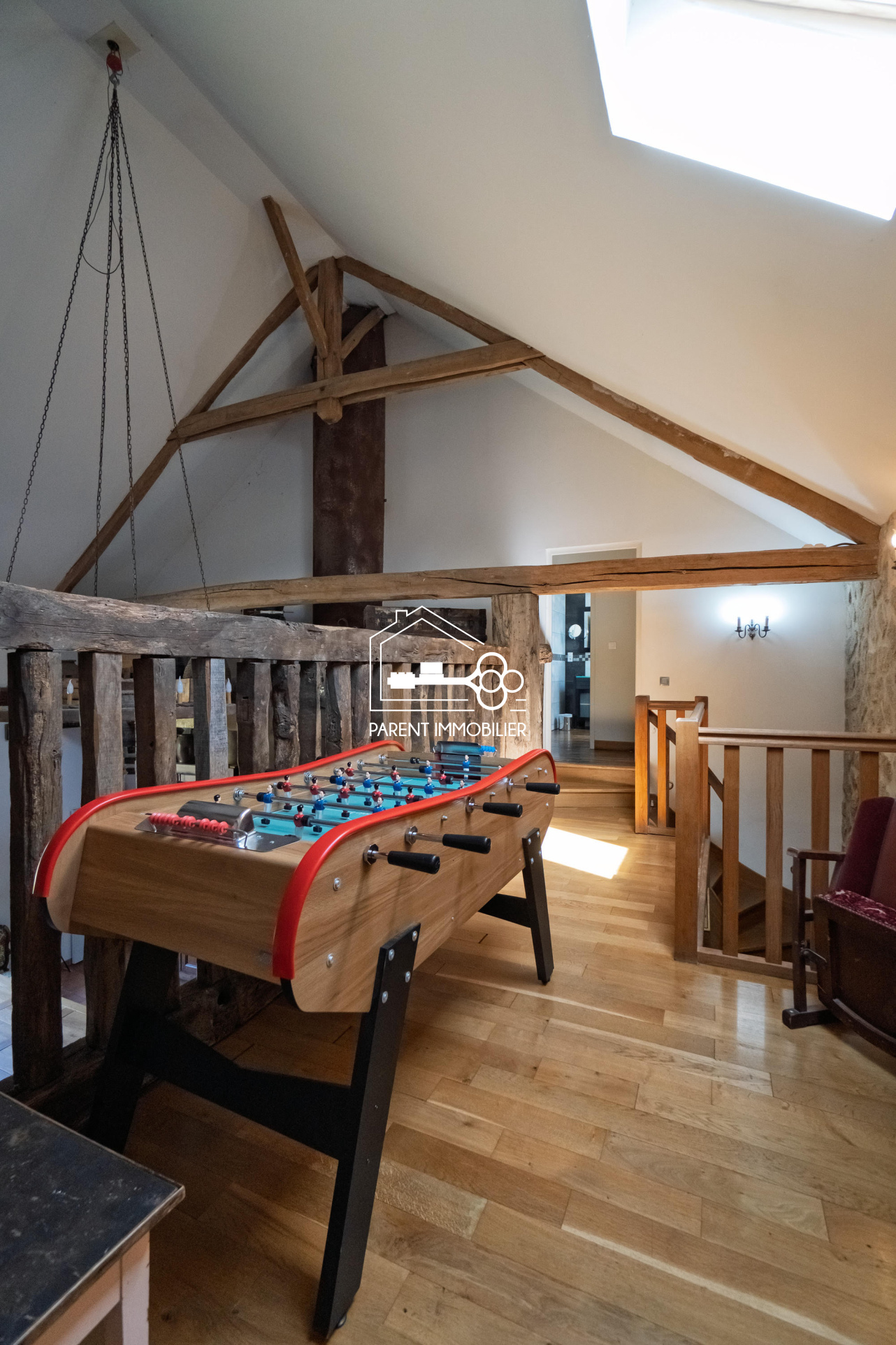 - Étage : quatre chambres spacieuses avec chacune leur propre ambiance, mezzanine, salle de bains et WC.