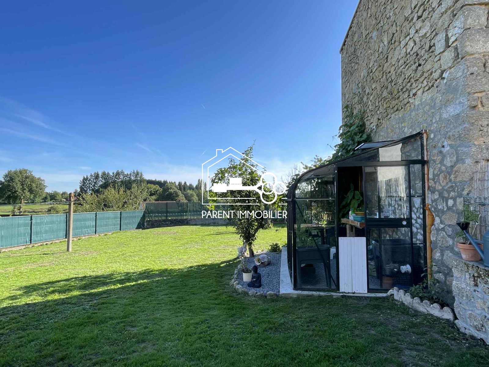 Le terrain, plat et entièrement clôturé, offre un espace extérieur agréable et sécurisé.